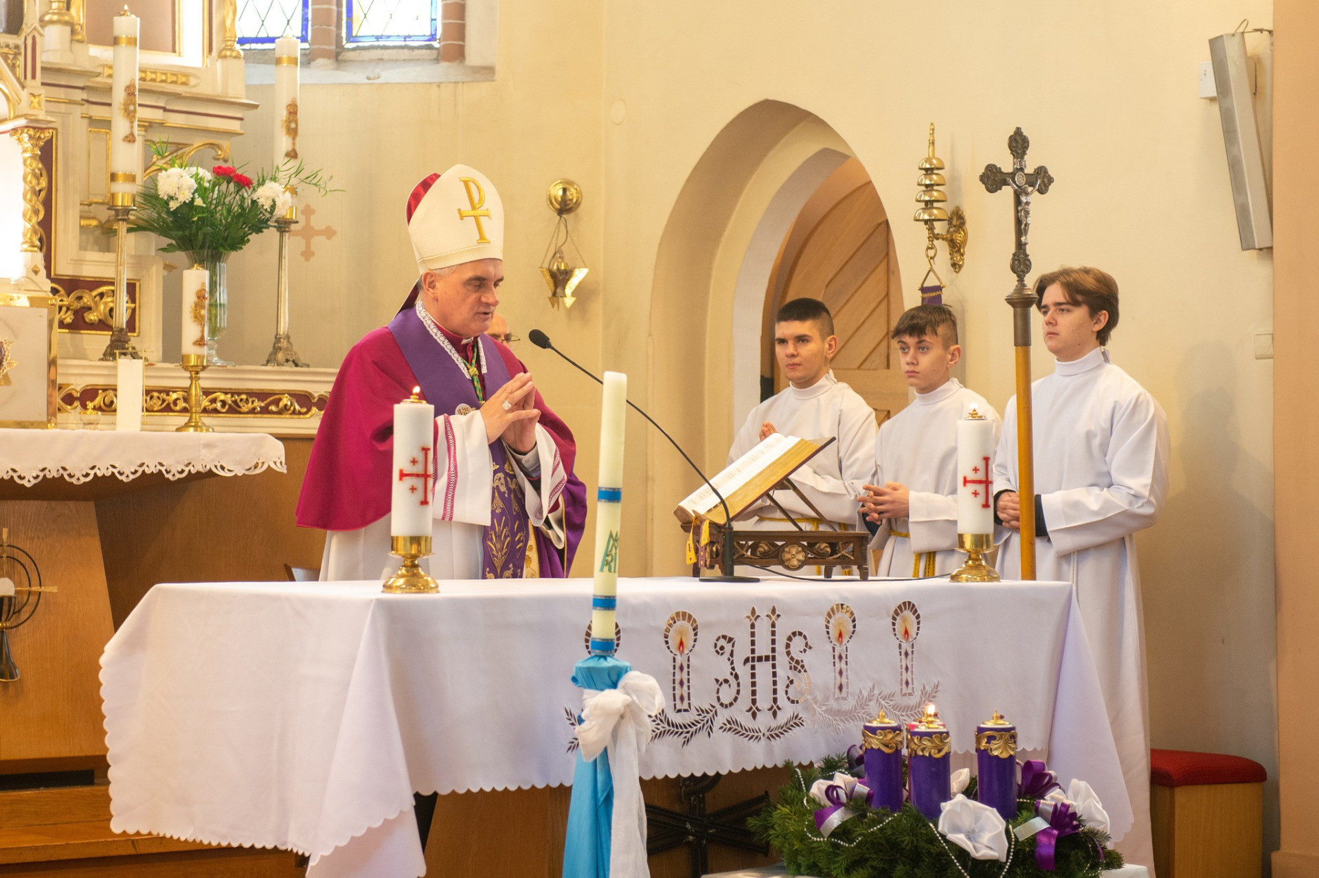 W niedzielę 03 grudnia 2023 r. gościliśmy w Parafii, podczas wizytacji kanonicznej Ks. Bp Krzysztofa Włodarczyka. Czas tego dnia upłynął na modlitwie dziękczynnej za Wspólnotę Parafii w Dąbrówce Nowej, za wszelkie Łaski, które w tym miejscu Pan Bóg zsyła na Parafian i Gości. Po modlitwie, odbyły się spotkania z poszczególnymi grupami, działającymi przy Parafii.